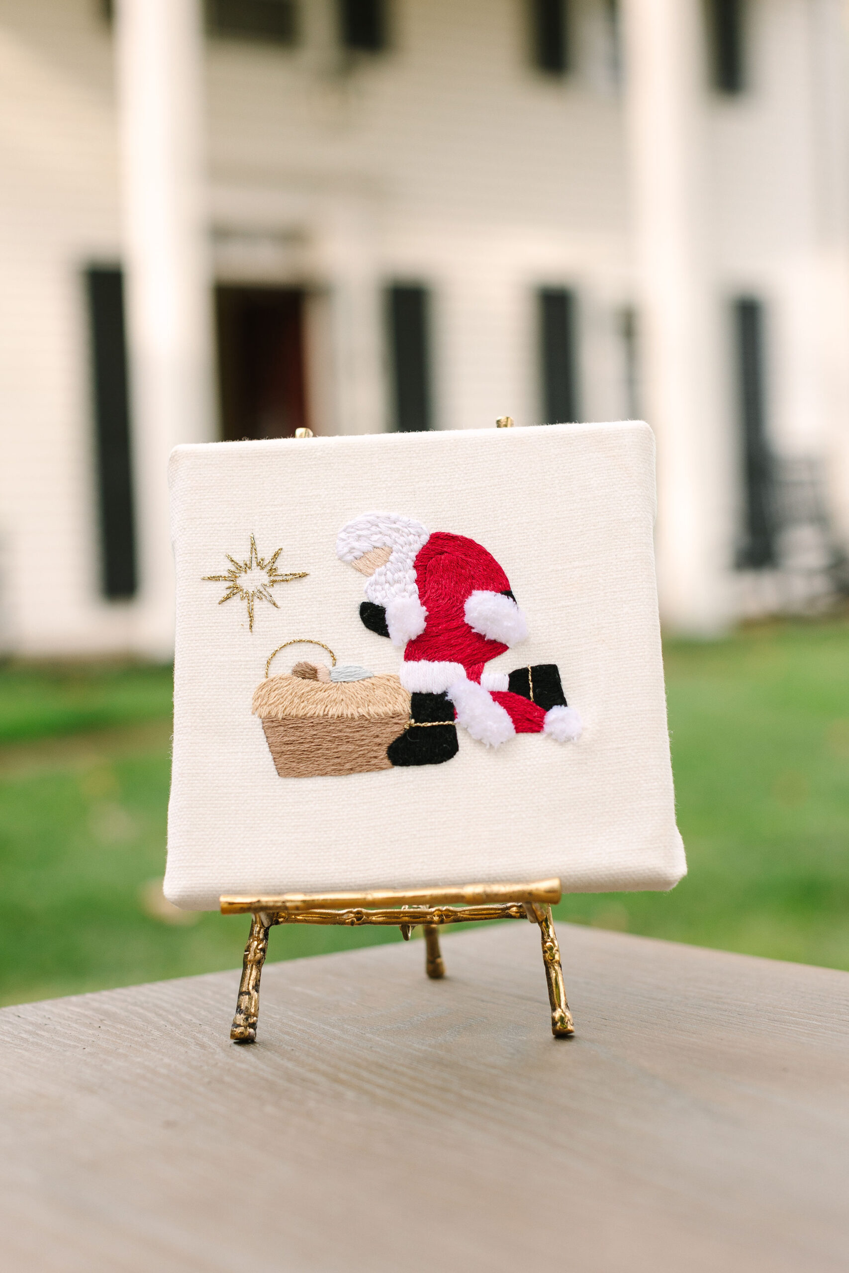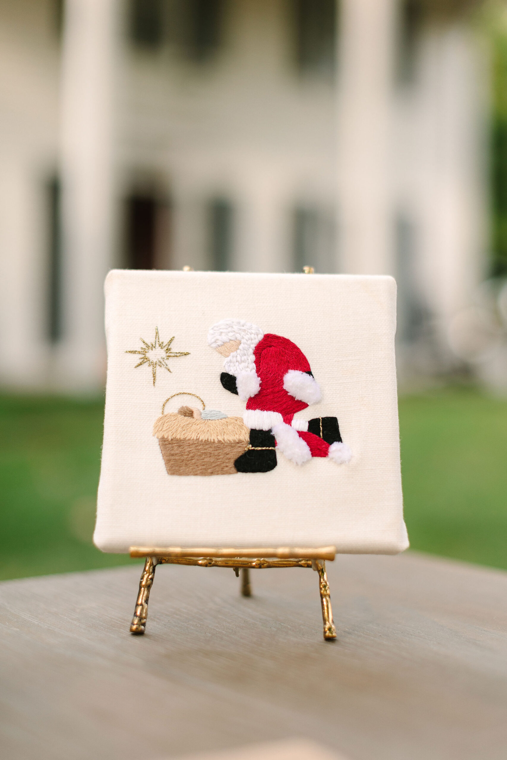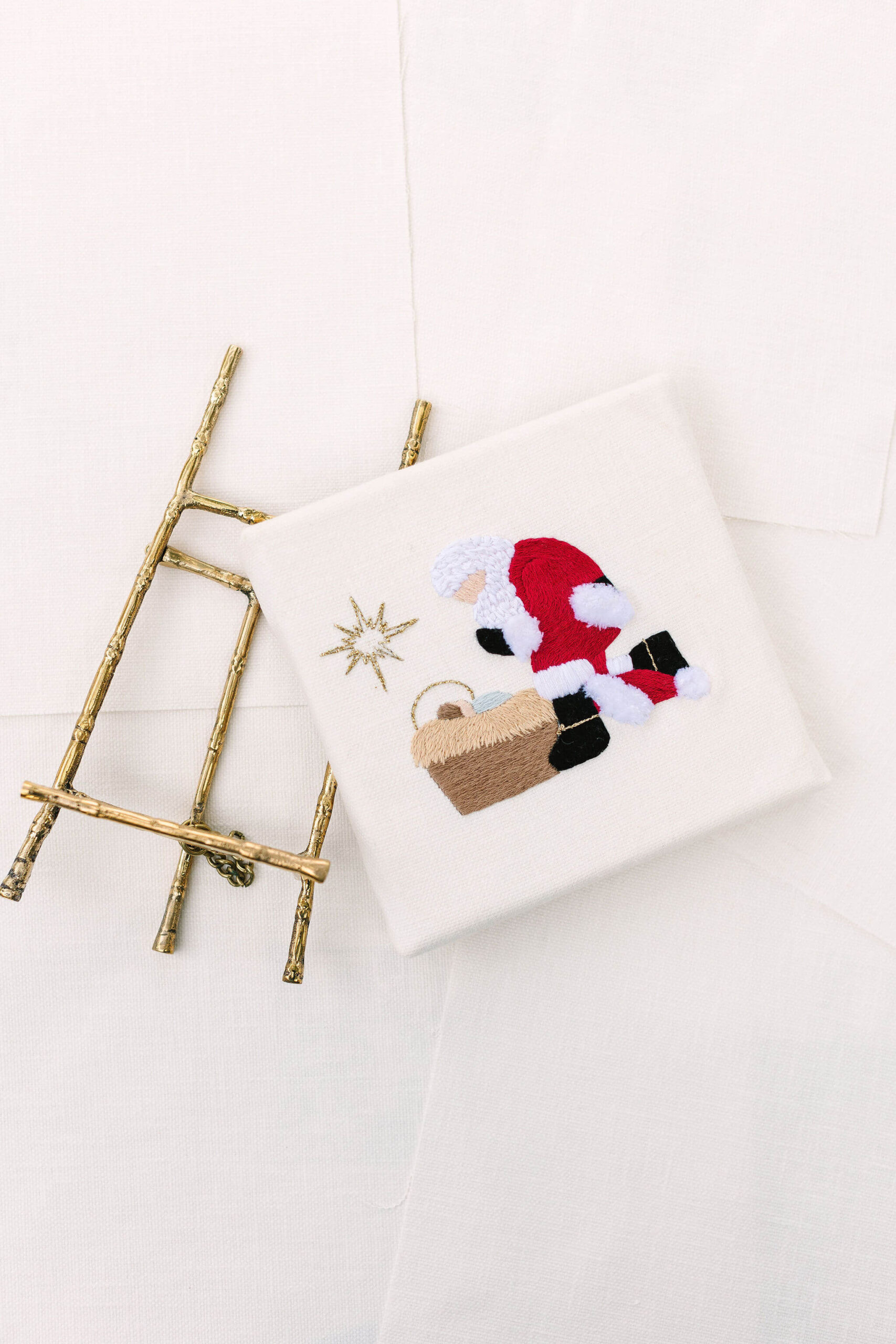 Celebrate the true meaning of Christmas with the “Every Knee Shall Bow” hand embroidery kit. This touching design captures a moment of humility and reverence: Santa Claus on bended knee, hat removed, kneeling before the newborn Baby Jesus, who rests peacefully in the manger with a glowing halo. This powerful scene reminds us that Christmas is first and foremost about Christ.