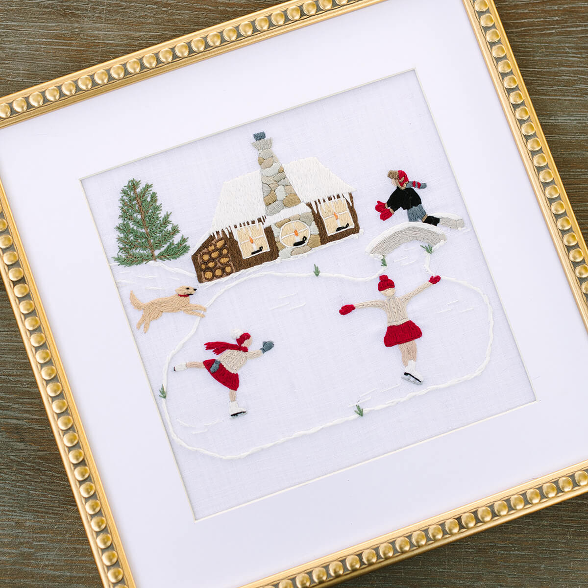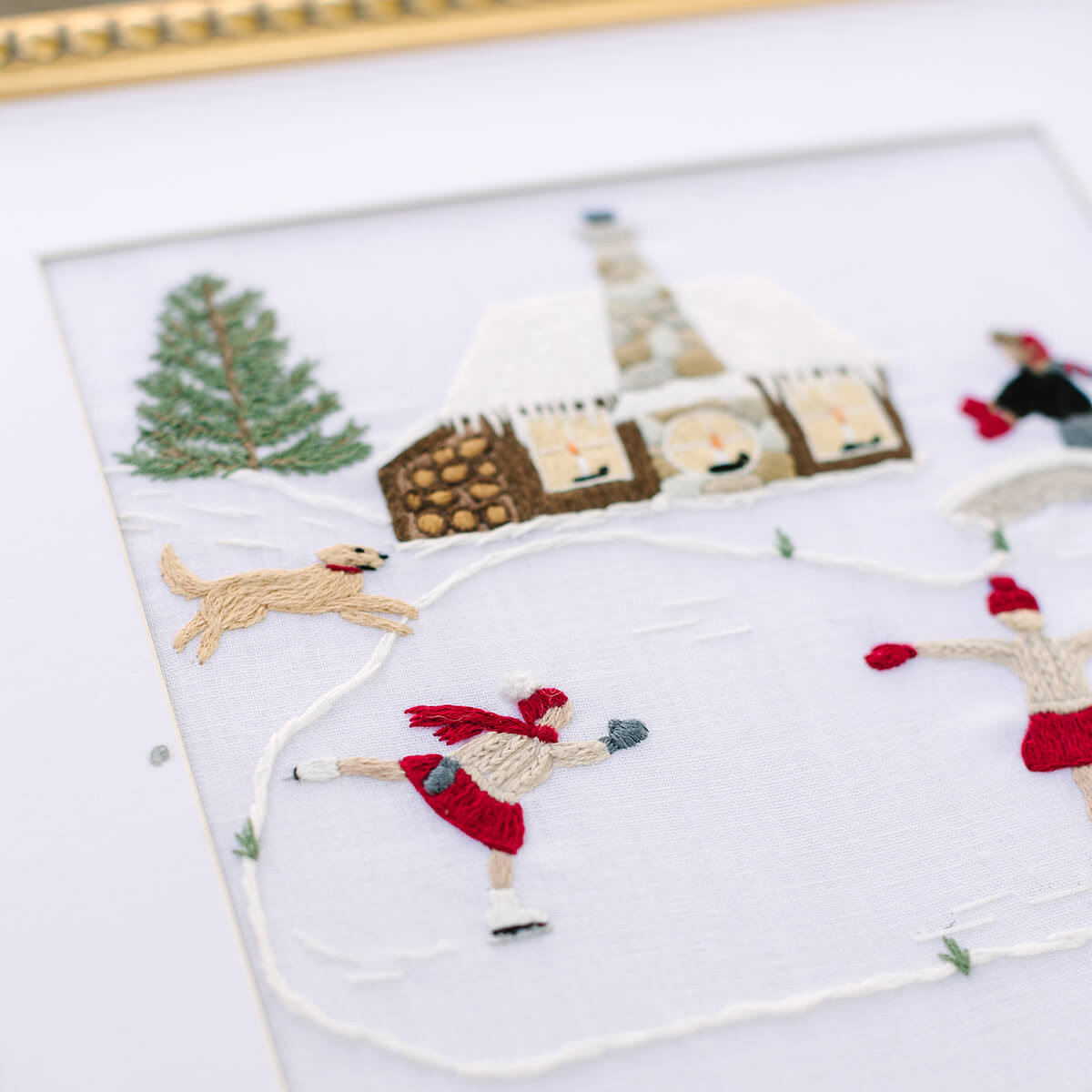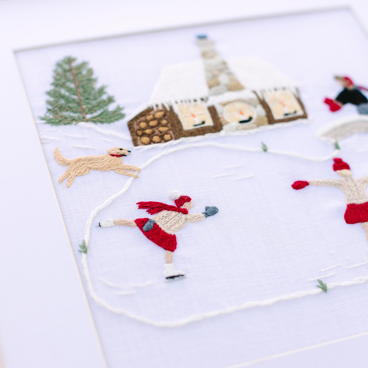 with the ‘Winter Skating at the Cabin’ Embroidery Kit